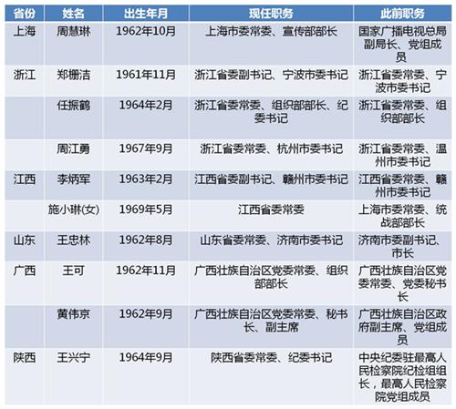近日六省份十名省委常委履新 其中含一名女性(表)