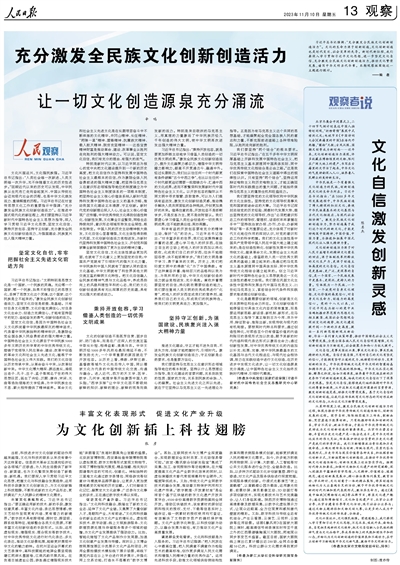 人民日报整版探讨:充分激发全民族文化创新创造活力