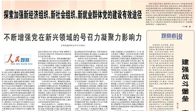 人民日报整版观察:探索加强新经济组织、新社会组织、新就业群体党的建设有效途径