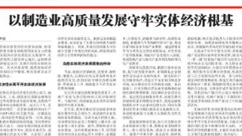 以制造业高质量发展守牢实体经济根基