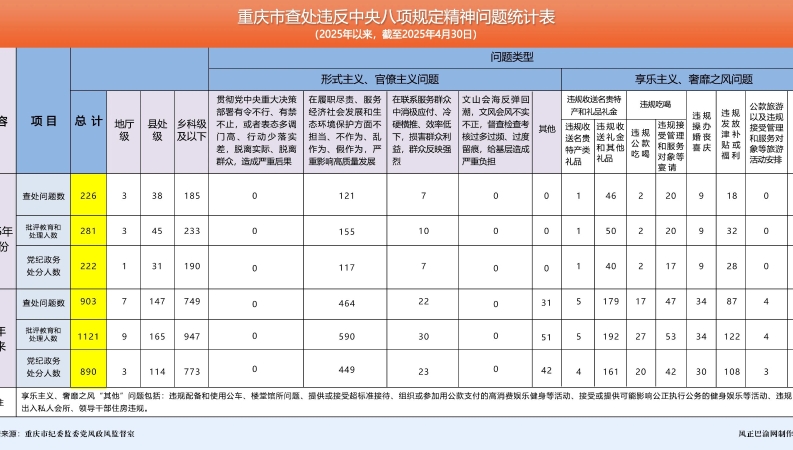 处分281人!2025年4月重庆市查处违反中央八项规定精神问题226起