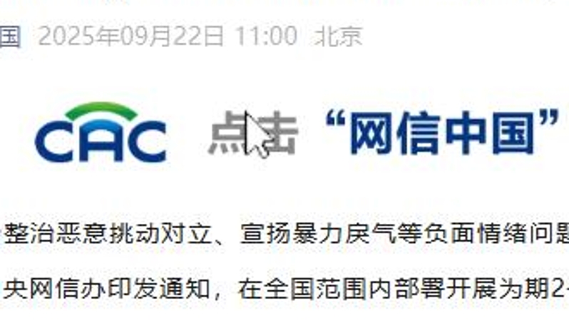 中央网信办部署开展“清朗·整治恶意挑动负面情绪问题”专项行动