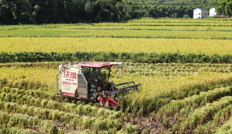 重庆沙坪坝:水稻开镰 稻浪滚滚好“丰”景