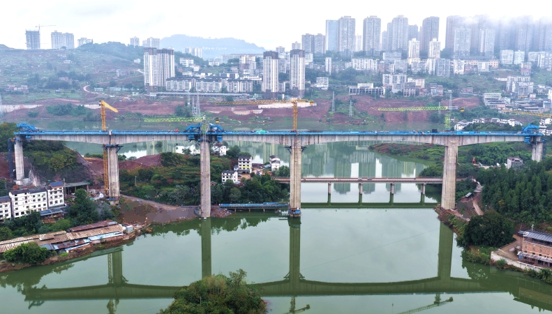 渝万高铁忠县段南溪村双线特大桥连续梁顺利合龙